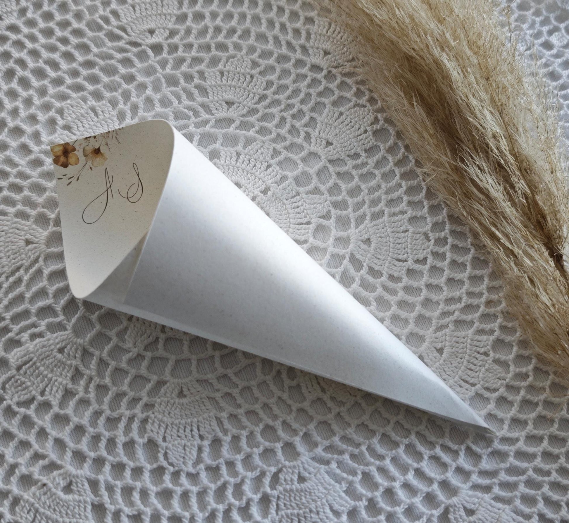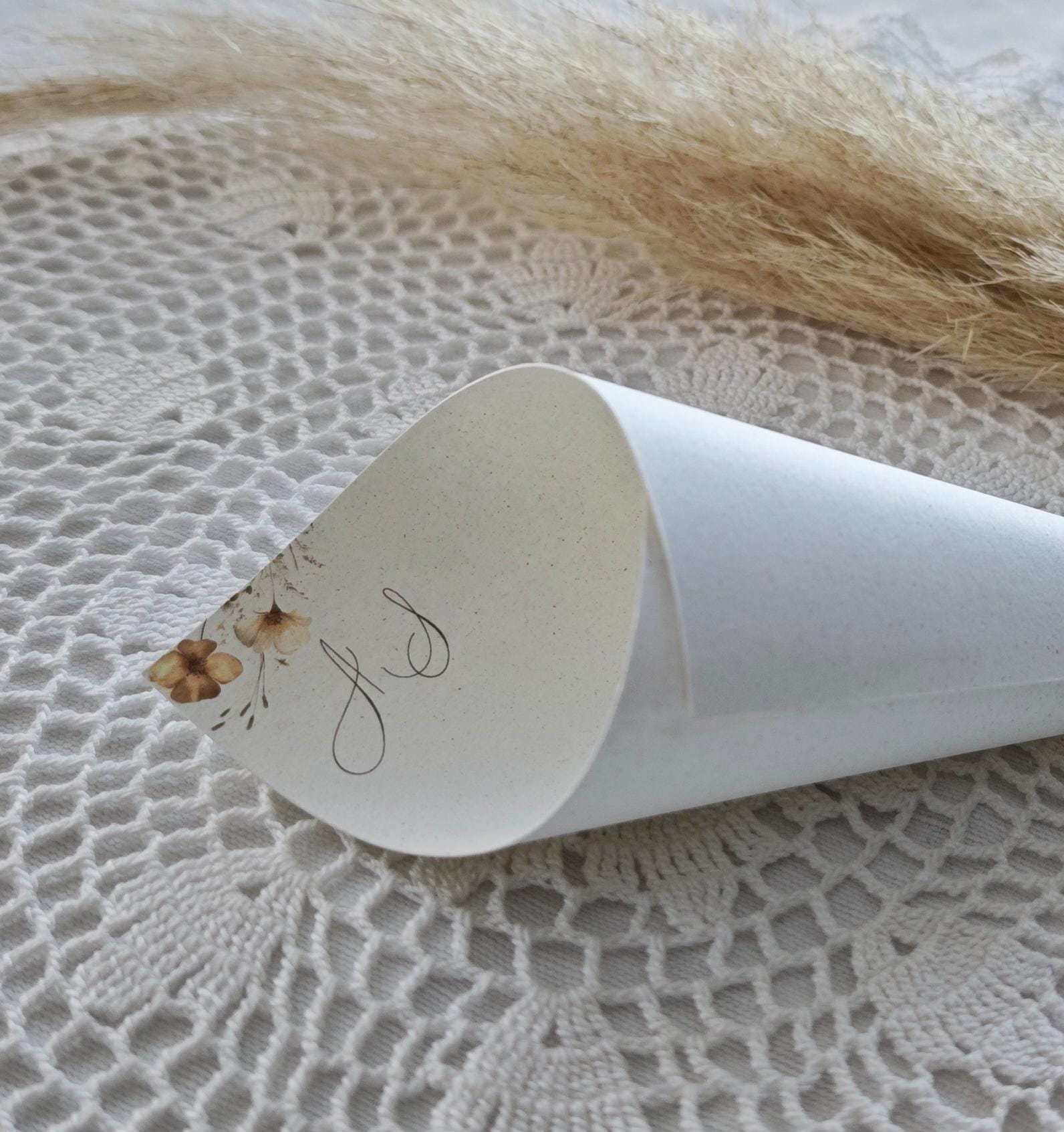 Cono lancia riso personalizzabile con nomi e data.