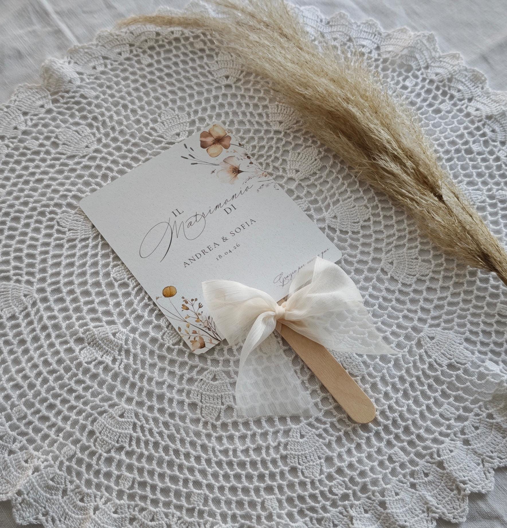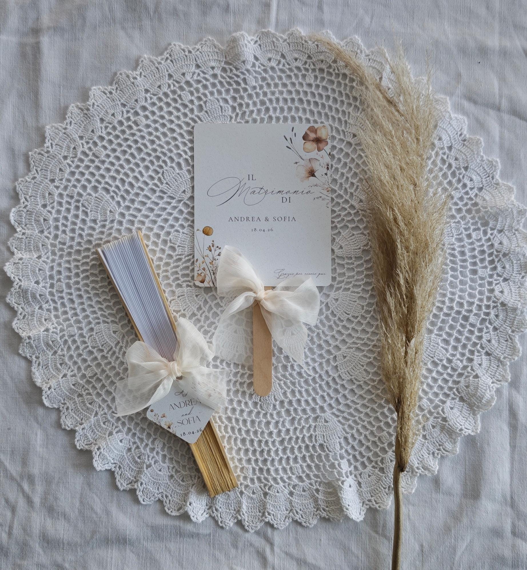Ventaglio personalizzabile, ideale per cerimonie ed eventi all’aperto. Elegante, pratico e coordinabile con il tema dell’evento. Un dettaglio utile e di classe per i vostri ospiti.