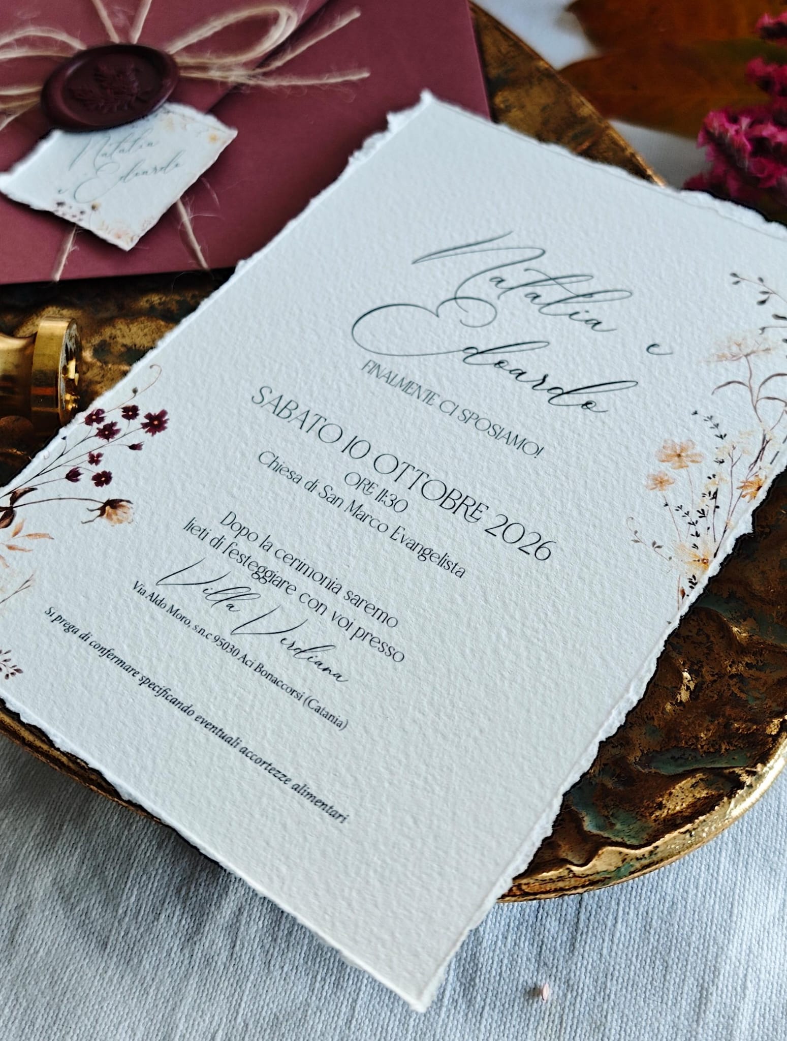 - personalizzazione delle informazioni (data evento, nomi degli sposi, chiesa, location, colore della busta)