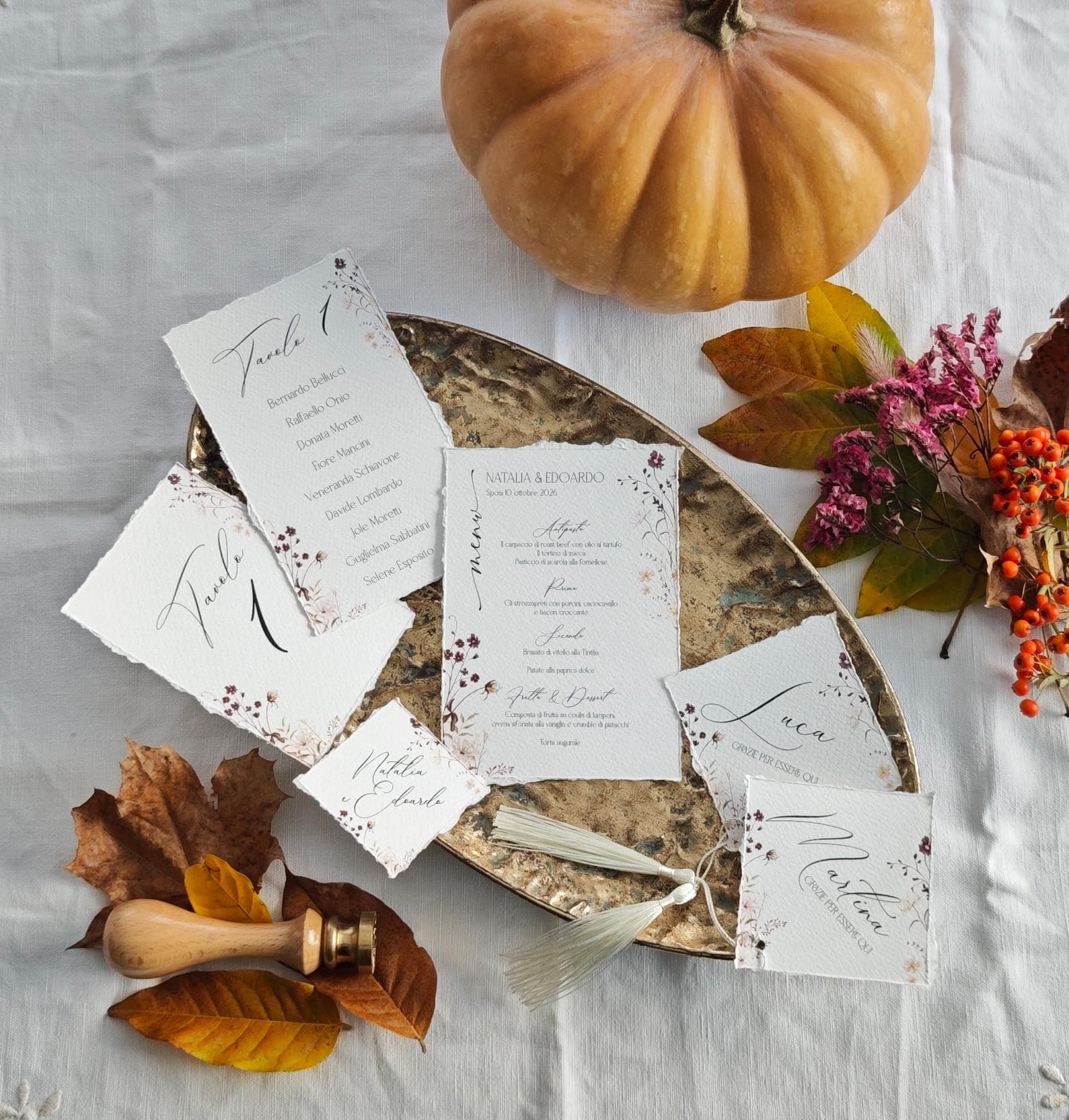 Tutti gli elementi sono abbinati nello stesso stile grafico e personalizzabili con nomi, data e colori dell’evento. Perfetto per un allestimento elegante e coerente.
