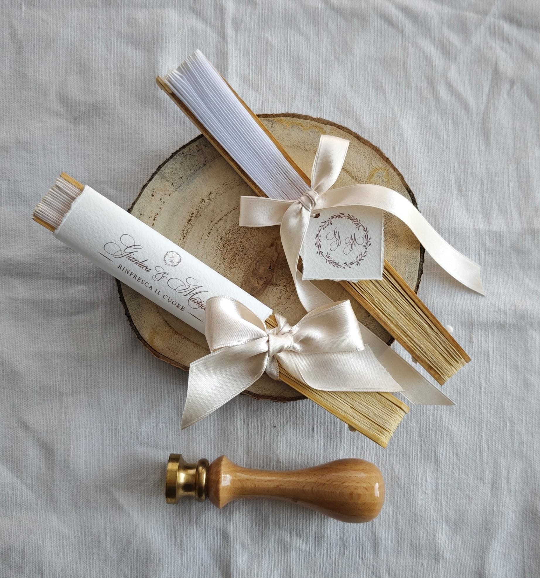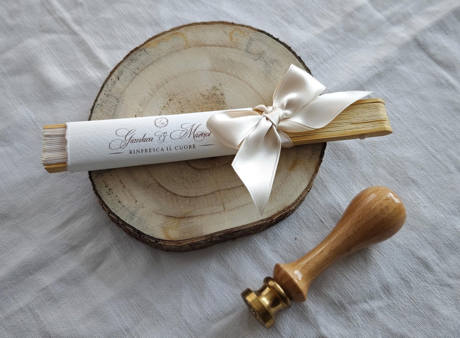 Ventaglio personalizzabile, ideale per cerimonie ed eventi all’aperto. Elegante, pratico e coordinabile con il tema dell’evento. Un dettaglio utile e di classe per i vostri ospiti.