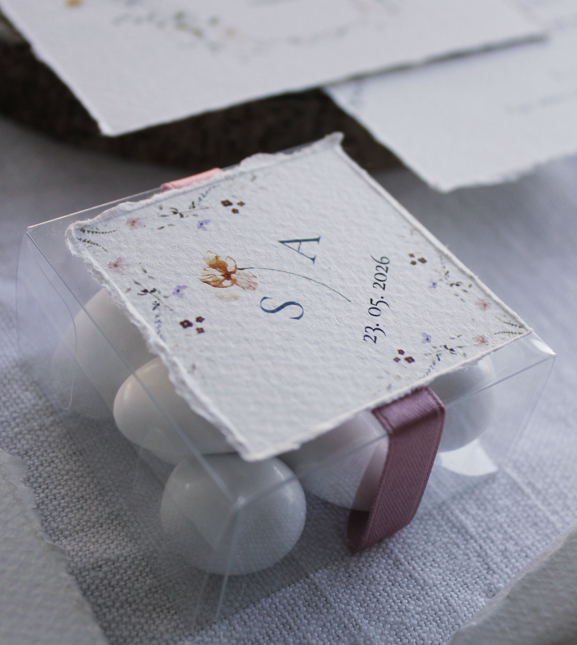 Tutti gli elementi sono abbinati nello stesso stile grafico e personalizzabili con nomi, data e colori dell’evento. Perfetto per un allestimento elegante e coerente.