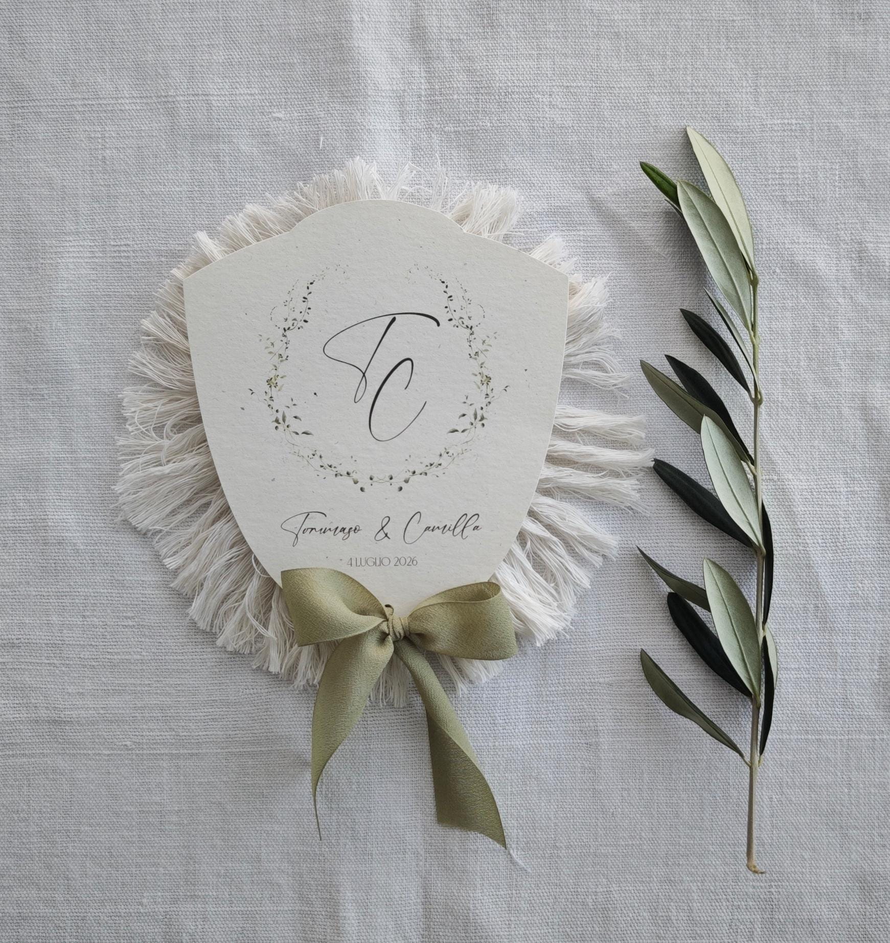 Ventaglio personalizzabile sagomato, ideale per cerimonie ed eventi all’aperto. Elegante, pratico e coordinabile con il tema dell’evento. Un dettaglio utile e di classe per i vostri ospiti.